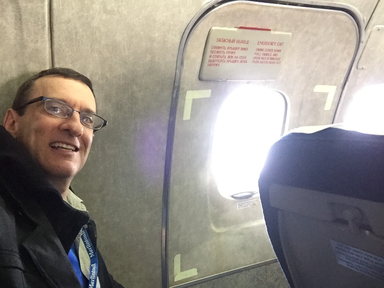 Once we got to cruise we had time to explore the cabin of the Belavia Tu-154. This selfie was taken at the very back row near the lavs. That’s Boris Vlassov from Merlin Tours on the left, and one of our Flight Attendants in the centre.