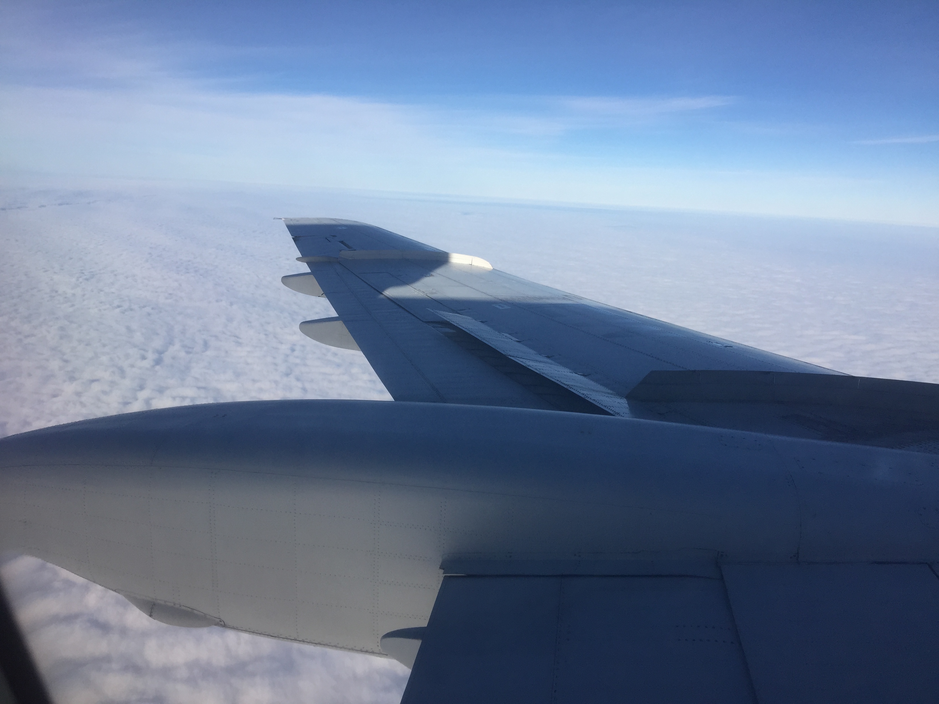 View through the window from my seat 25A as we climbed through the clouds up to our cruising altitude outbound from Minsk. This photo was probably taken about 10 minutes after take-off.