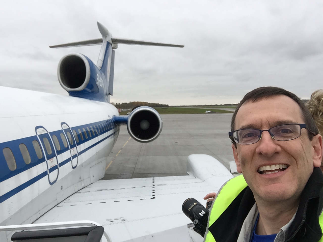 Henry Tenby poses for an iPhone selfie while at the top of the boarding stairs in Saint Petersburg, Russia. We’re boarding the Belavia Tu-154 for the last sked flight of this type. End of an era!